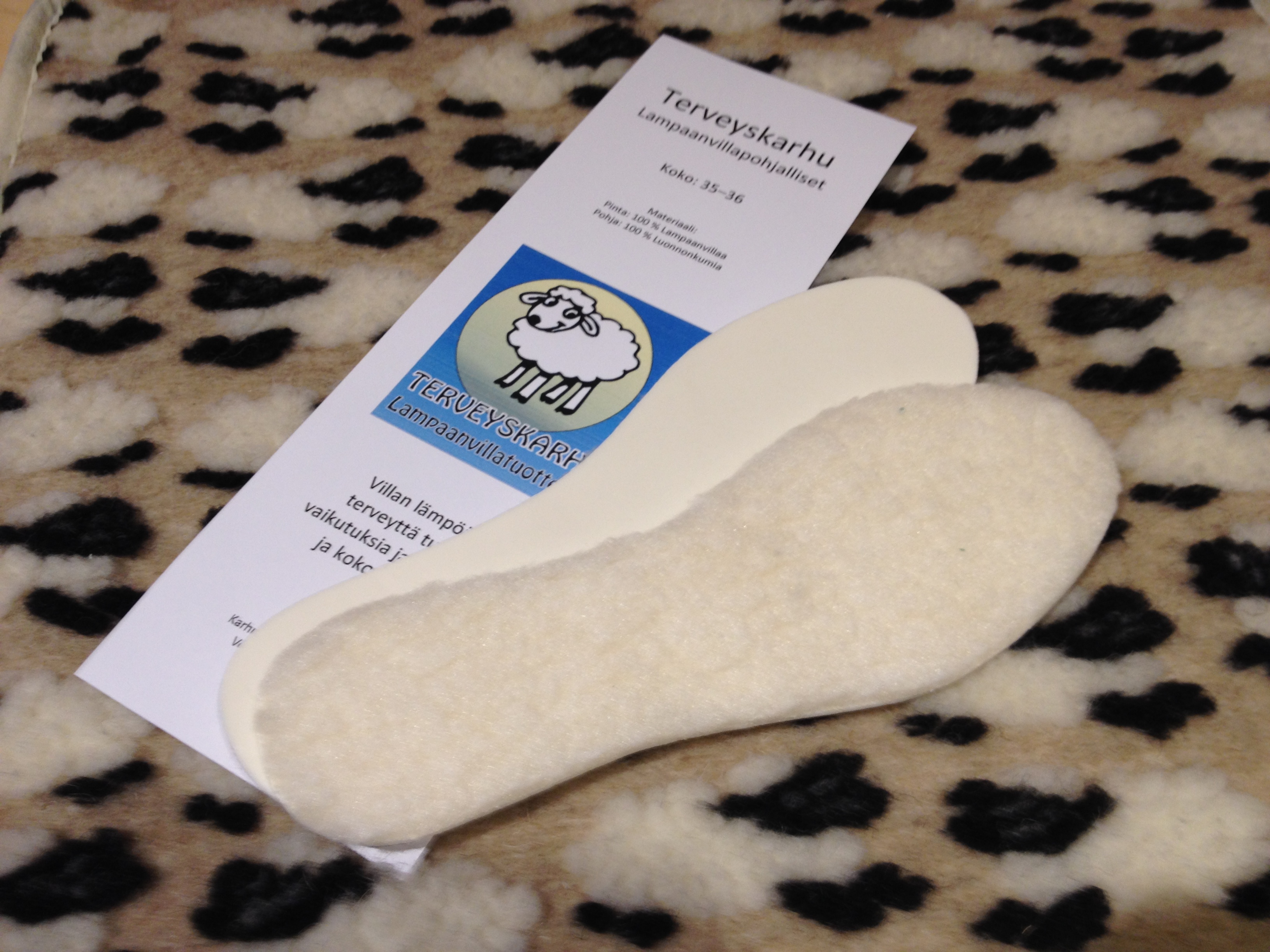 Lämpimissä lampaanvillapohjallisissa on kaksi kerrosta. Pinta on pehmeää vaaleaa (100 %) lampaanvillaa ja pohja joustavaa vaaleaa luonnonkumia (lateksia). Pohjamateriaalin ansioista pohjalliset muotoutuvat hyvin ja pitävät pohjalliset paikallaan. Pohjallisia on kuutta kokoa: 35-36, 37-38, 39-40, 41-42, 43-44 ja 45-46.